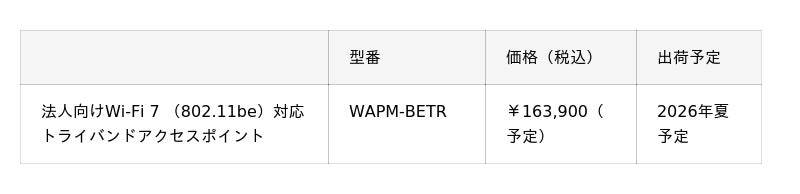 最新規格「Wi-Fi 7」に対応し、最大1,536台の同時接続が可能な法人向けトライバンドWi-Fiアクセスポイント「WAPM-BETR」を来夏発売予定