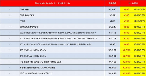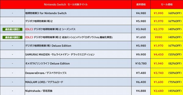 ディースリー・パブリッシャーは11月6日、同社のNintendo Switchダウンロードソフトを最大82%オフで購入できるニンテンドーeショップの「オータムセール第2弾」を開催。セール期間は、2025年11月19日まで。