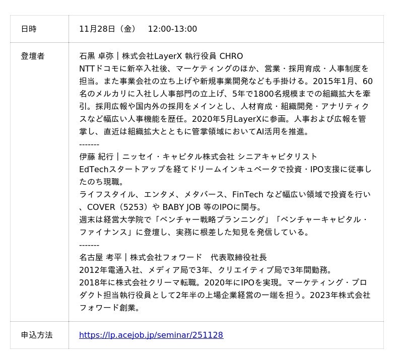 ウェビナーでは、資金調達の背景や採用活動におけるAIの活用方法などについて豪華ゲストとともに解説していきます。