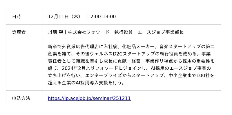 AI採用最前線!「エースジョブ」のフォワード、4週連続ウェビナーを開催