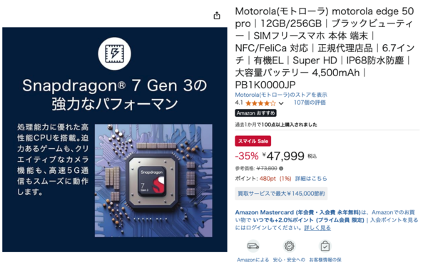 「motorola edge 50 pro」は、デザイン・性能・価格のバランスが優れた1台。Amazon.co.jpで、この機会を逃さずお得に手にしてください。