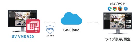 GV-Cloud VMSとの統合により、面倒なネットワーク機器設定不要でクラウド経 由での遠隔監視を実現します。専用VPNサービス対応でより安心・安全。ローカ ル+クラウド運用も可能。