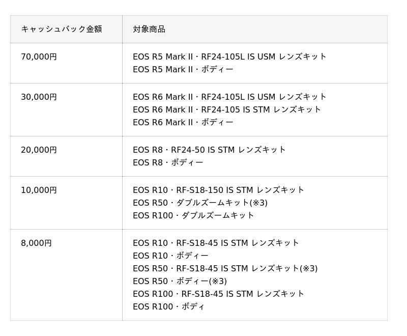 「EOS R6 Mark III発売記念キャンペーン」&「キヤノン 冬のキャッシュバック2025」