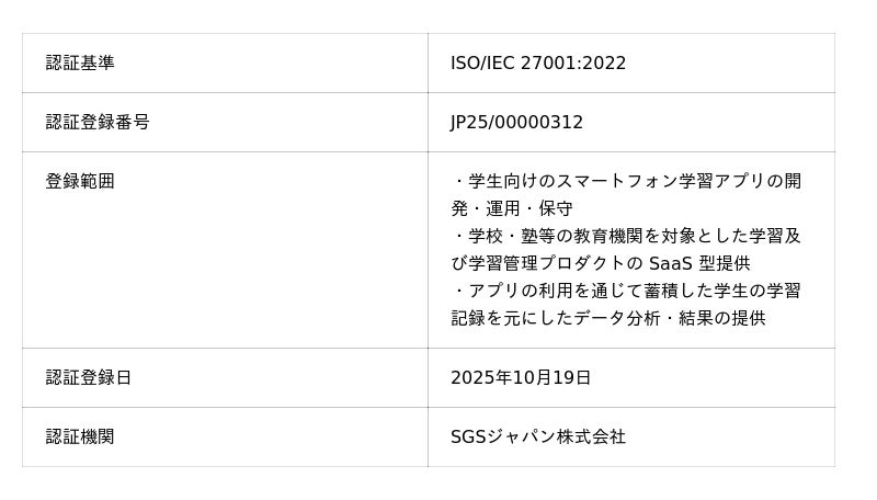 生成AIを活用したAIチューター「Knock(ノック)」を開発・提供するHanji株式会社(本社:東京都品川区、代表取締役CEO:村田 洋佑、以下「Hanji(ハンジ)」)は、情報セキュリティマネジメントシステム(ISMS)の国際規格である「ISO/IEC 27001:2022」に基づいた認証を取得したことをお知らせします。