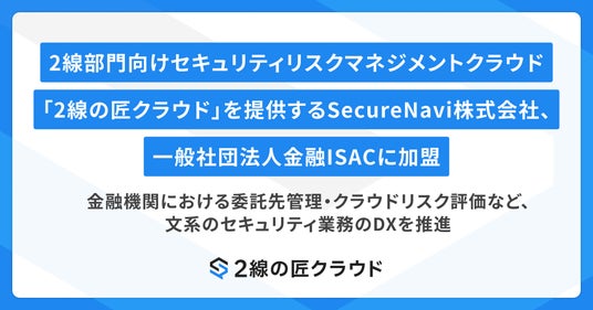 2線部門向けセキュリティリスクマネジメントクラウド「2線の匠クラウド」を提供するSecureNavi株式会社、一般社団法人金融ISACに加盟