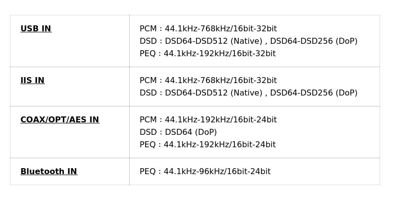 対応サンプリングレート 《一部抜粋》