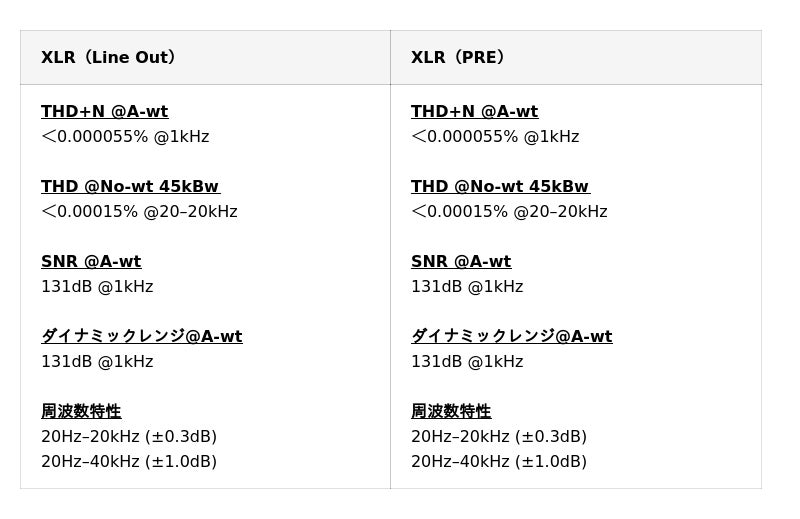 D900 DAC パラメーター(LineOut/USB IN @96kHz) 《一部抜粋》