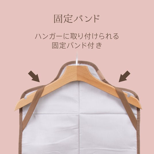 本製品の固定バンドをハンガーに取り付けることで、衣類をハンガーにかけたままスチームがけができます。