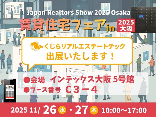 賃貸集合住宅向けのIoTソリューションを提供する、株式会社くじらリアルエステートテック(本社:大阪府大阪市西区)は、2025年11月26日(水)・27日(木)にインテックス大阪で開催される「賃貸住宅フェア 2025」に出展いたします。