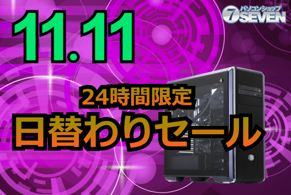 セブンアールジャパンが運営するパソコンショップSEVENは、11月11日に『2025/11/11 24時間限定セール』を開催する。最新のゲーミングPCやデスクトップPCが最大40,000円オフという魅力的な価格で提供される予定だ。