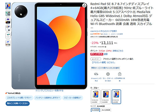 動画視聴も読書も快適に! Xiaomi(シャオミ)のコンパクトタブレット「Redmi Pad SE 8.7」が、Amazonセールに登場しました。