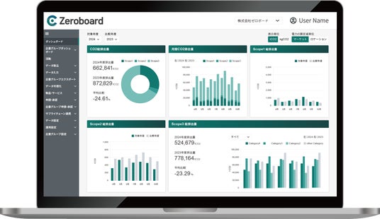 「Zeroboard」は、GHG(温室効果ガス)排出量算定・開示・削減までを支援するソリューションです。国内外のサプライチェーン排出量、製品別・サービス別の排出量(カーボンフットプリント:CFP)をクラウドで算定・可視化するほか、削減貢献量や水資源などの登録も可能で、各種レポートの出力にも対応。算定を入り口として、ユーザー企業の課題に合わせたGHG削減ソリューションを提供することで、企業の脱炭素経営を支援しています。