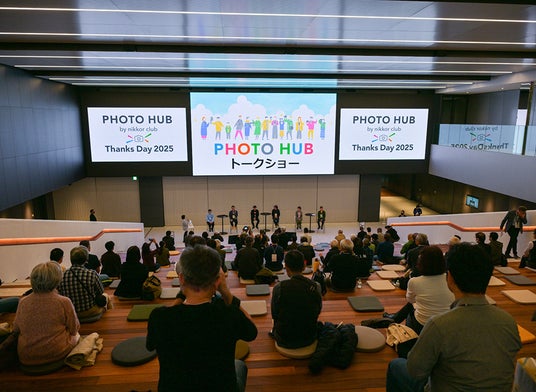 日頃の感謝の気持ちを込めて、ニッコールクラブ会員の皆さまを無料でご招待する「PHOTO HUB Thanks Day」を10月25日に開催。当イベントでは、ニコンの開発者によるトークショーやニッコールクラブアドバイザーによるワークショップ、マンツーマン作品講評、レタッチレクチャーなど、イベント限定のコンテンツを多数実施しました。さらに、最新のニコン Zシリーズを体験できる機材ブースの展開や、限定グッズの販売も行われ、ご参加の皆さまに大変ご好評いただきました。