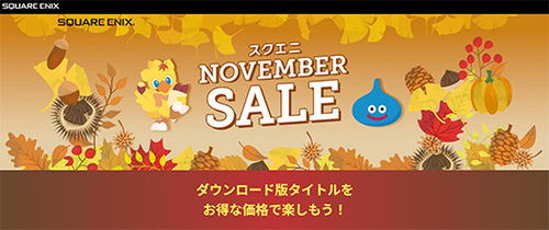 RPGファンに朗報!スクウェア・エニックスのダウンロード版タイトルが、PlayStation Store、ニンテンドーeショップ、Steamなど各ストアで最大70%OFFとなる「スクエニ NOVEMBER セール」が開催中です。