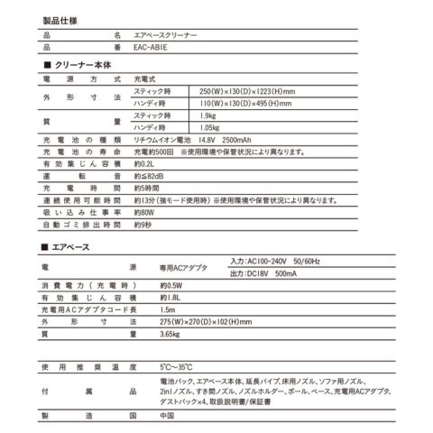 商品名:Air Base Cleaner(エアベースクリーナー) EAC-AB1E