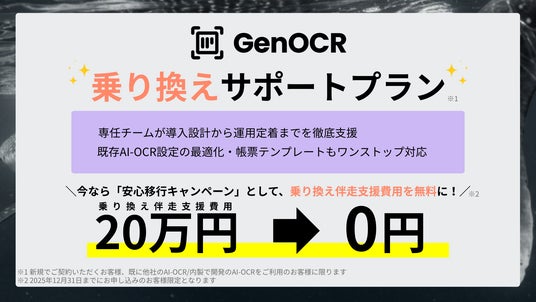 「ジンベイGenOCR」、AI-OCR乗り換えサポートプランを開始 ― 乗り換え伴走支援費用20万円を無料に ―