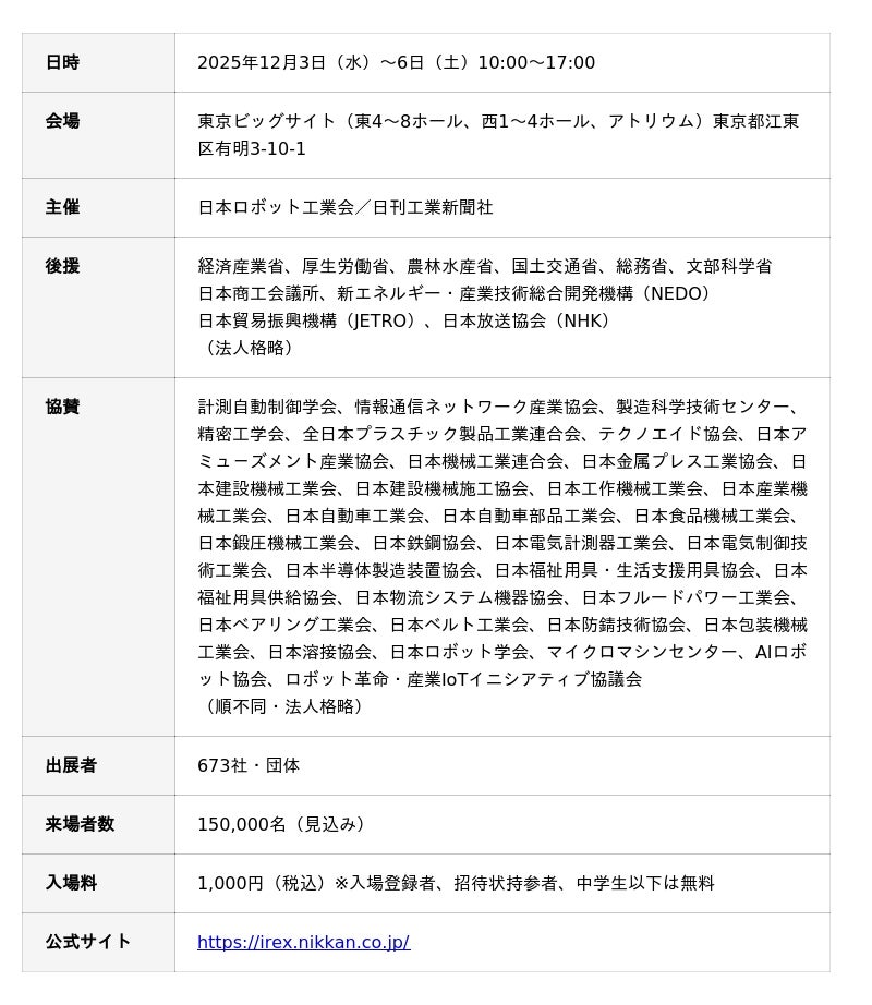 【「2025国際ロボット展」について】(https://irex.nikkan.co.jp/)