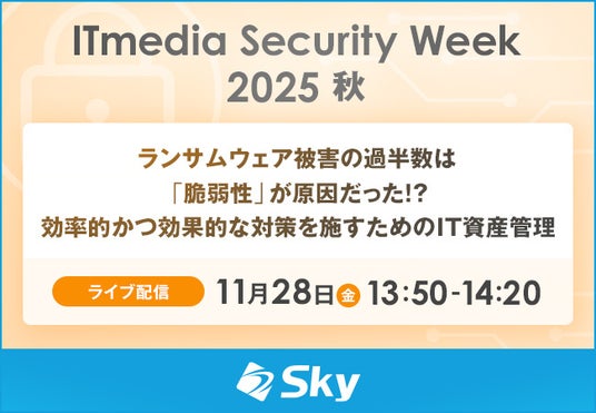 Sky株式会社は、2025年11月25日(火)~12月1日(月)に開催されるライブ配信セミナー「ITmedia Security Week 2025 秋」に協賛いたします。