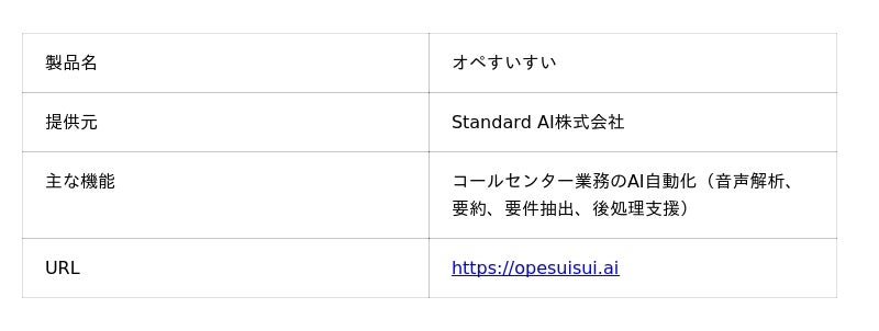 コンタクトセンターのオペレーター業務の効率化と応対品質の均一化を支援するAIソリューション「オペすいすい」を提供する Standard AI株式会社(本社:東京都北区、代表取締役:鈴木 崇、以下 Standard AI)は、株式会社コムデザイン(本社:東京都千代田区平河町、代表取締役社長:寺尾憲二、以下 コムデザイン)が提供するクラウド型CTIサービス「CT-e1/SaaS」との連携環境を活用し、複数拠点のコンタクトセンター運営企業においてAIによる業務改善の実証を実施しました。