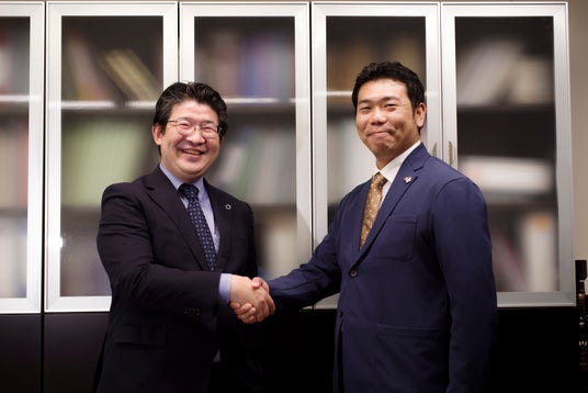 左:国立大学法人京都大学大学院医学研究科 糖尿病・内分泌・栄養内科学 矢部大介教授、右:株式会社セカンドハート 代表取締役CEO 石田幸広
