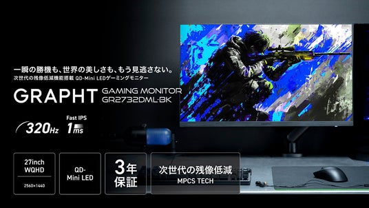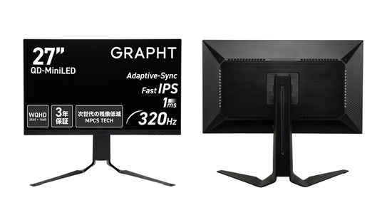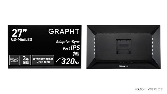 【GRAPHT】QD-Mini LED採用27インチゲーミングモニターを11月14日発売 残像低減機能「MPCS TECH」搭載、スタンドレス/スタンド付属の2タイプを展開