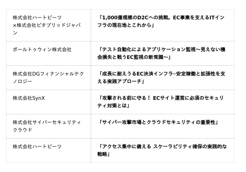 EC運営企業が抱えるリソース不足や運用負荷増大、可用性・セキュリティ確保、事業成長に応じたインフラ対応といった課題に対し、実務的な解決策とノウハウを提供するカンファレンスです。