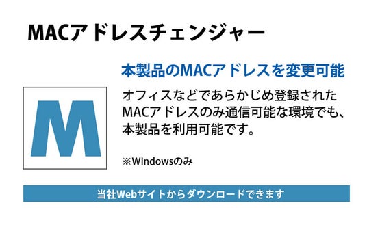 - 社内のパソコンをMACアドレスで管理している場合でも、無料ソフト「MACアドレスチェンジャー」を使うことで利用可能になります。