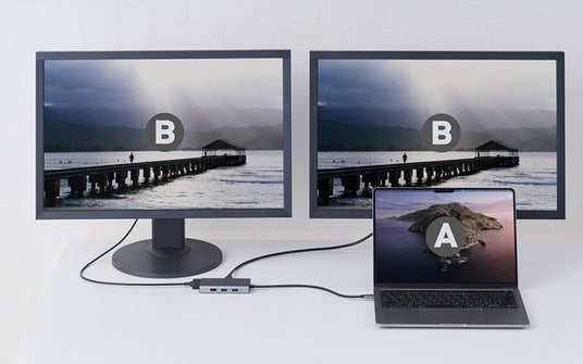 - 4K対応HDMIポートと1,080p対応VGAポートを使用して、同時に2画面へ出力することが可能です。