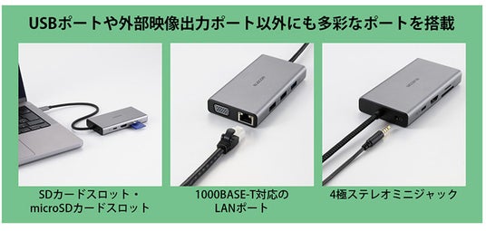 VGA+HDMI搭載で同時出力も可能!ケーブル1本で10ポートの機能拡張ができる、USB Type-C接続のドッキングステーションを新発売