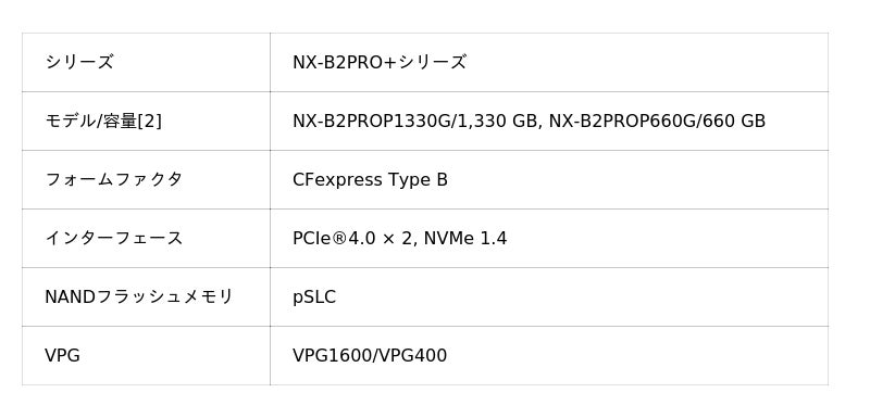 ■ VPG1600/VPG400対応CFexpress 4.0 Type Bメモリーカード:NX-B2PRO+シリーズ