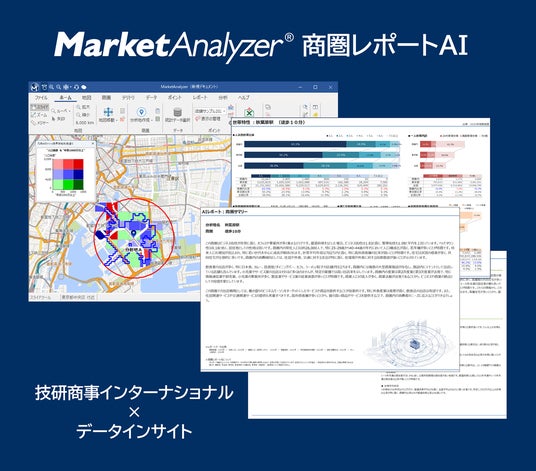 「商圏レポートAI」は、専門家でなければ難しかった高度な商圏分析を、AIの力で誰でも簡単に行えるようにする機能です。技研商事インターナショナルの商圏分析GIS「MarketAnalyzer(R) 5」に搭載しています。加盟企業でAIに強いデータインサイト社との共創で開発しました。位置情報と連携した「リアルな商圏」を対象に、1,000項目に及ぶ多彩なデータを瞬時に解析。単なるデータのAI変換ではなく、分析のプロの知見(緻密な判定基準)を組み込んでいるため、ハルシネーション(嘘)のない、信頼性の高い分析結果を出力。チェーン企業の商圏理解と意思決定の民主化に貢献しています。