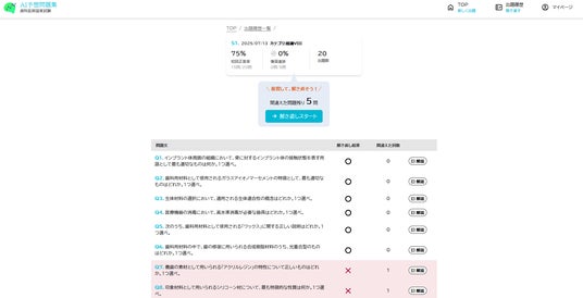 できるまで徹底復習 出題された問題はすべて保存されます。 間違えた問題は後から何度でも復習可能です。