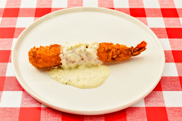 太く食べ応えのあるぷりぷりのエビを使用し、しっかりとした衣で揚げた一品はサクサクとした食感が特徴。ナポリタンとも相性抜群のタルタルソースが添えて提供される。