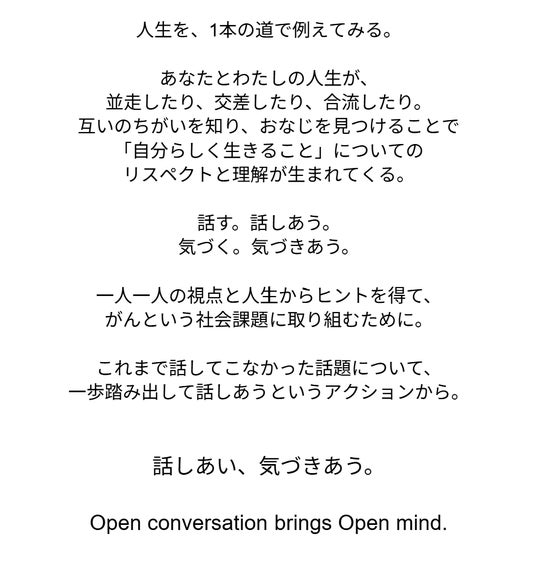 「話しあい、気づきあう。Open conversation brings Open mind.」