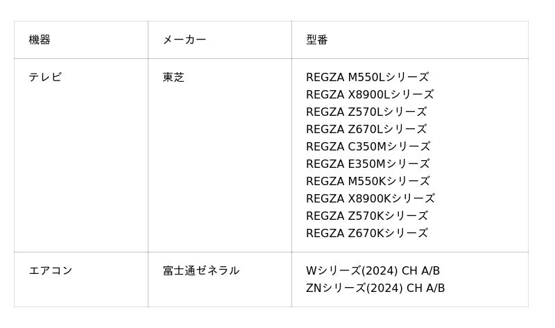 今回のアップデートでは、テレビ、エアコンの対応機種が追加されました。スマート家電リモコンの対応機器は、今後も随時増えてまいります。