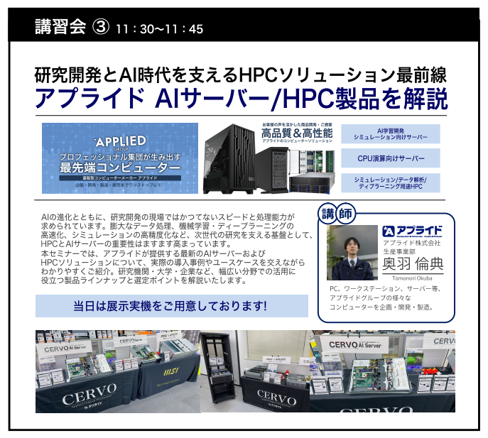 【内容】: 膨大なデータ処理やディープラーニングの高速化など、次世代の研究を支える最新のHPC・AIサーバーの製品ラインナップと、用途に応じた最適な選定ポイントを導入事例を交えて解説します。