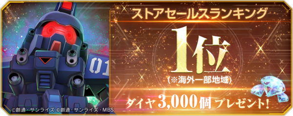 バンダイナムコエンターテインメントは11月12日、iOS/Android/PC向けガンダムシミュレーション「SDガンダム ジージェネレーション エターナル」の海外一部地域でランキング1位を獲得したことを記念し、ダイヤ3000個を全ユーザーへ無料配布した。
