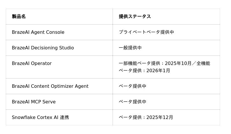 BrazeAI Operator などの新しいAIツール群、Snowflake Cortex AIとの統合により、マーケターを支援・創造・構築する生成型かつエージェント型の機能を実現