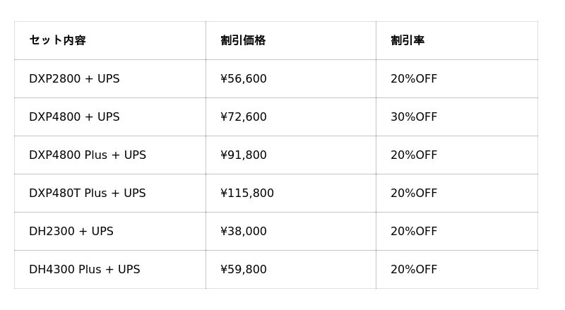 - 公式サイトにてNASやUPSセットが最大30%OFF