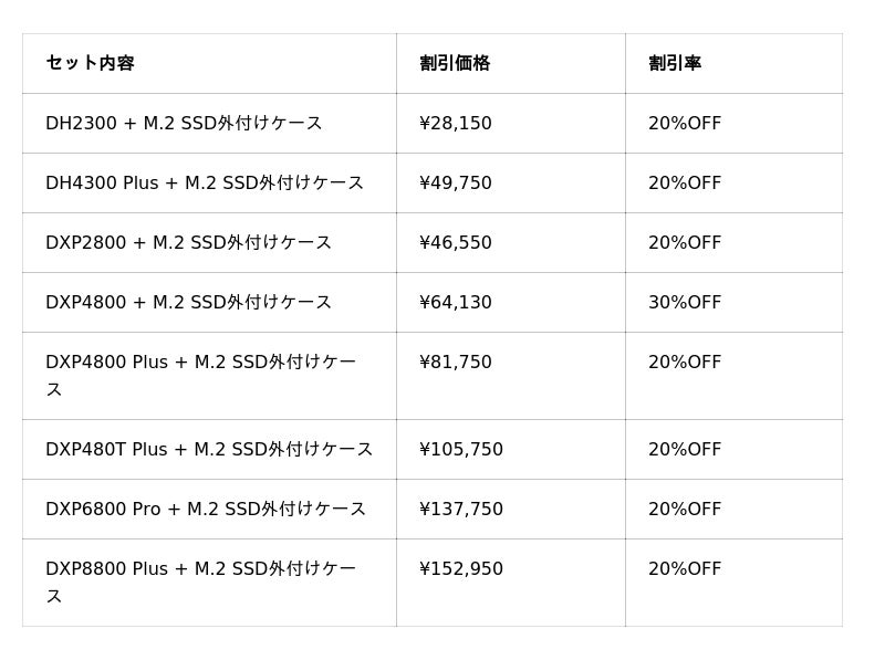 ・セール内容:NAS シリーズ+UPSまたはM.2 SSD外付けケース セット最大30%OFF