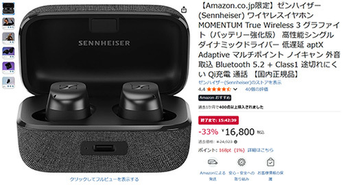 ゼンハイザーの名機が1万円台! 高音質×ノイキャン「MOMENTUM True Wireless 3」が33%オフ