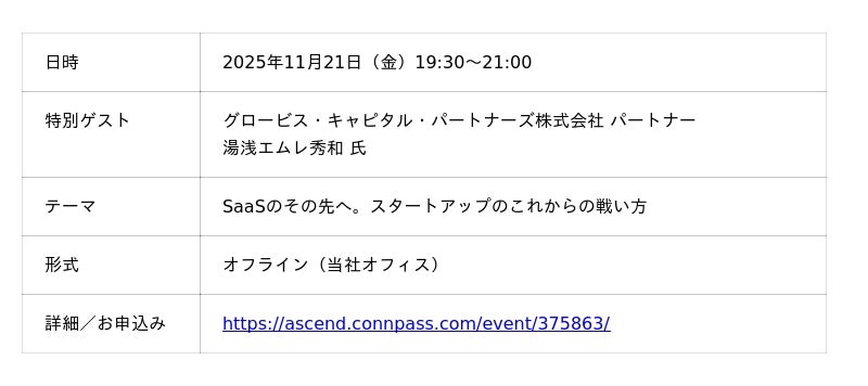 “アセンドの今とこれから”を知る場として、弊社代表をはじめとした創業メンバーによる座談会をオンライン・オフラインで開催します。
