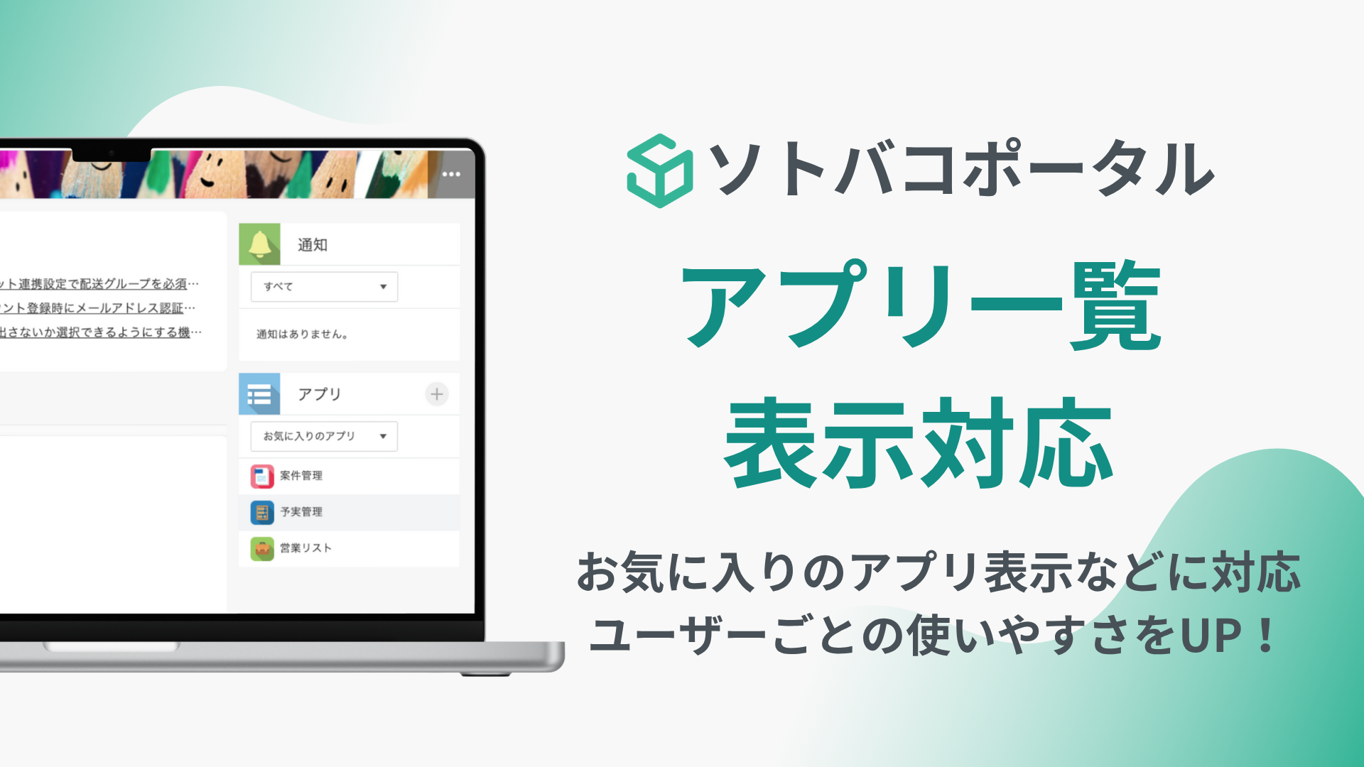 株式会社ソトバコ.(本社:福岡県福岡市)は、「ソトバコポータル」にてkintoneのアプリ一覧表示に対応しました。