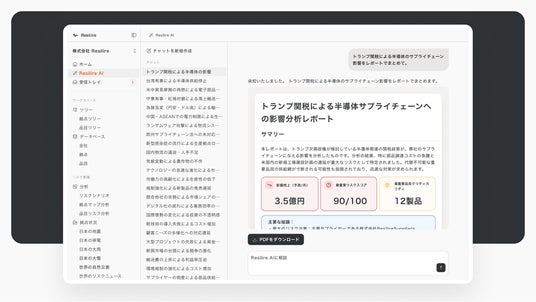 サプライチェーンリスク管理サービス「Resilire」、AI搭載の新機能「Resilire AI Agent」を提供開始