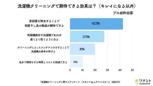こうした汚れをリセットするには、気温や湿度が落ち着き、乾燥しやすい秋のタイミングが理想的です。そこでユアマイスターでは、ハウスクリーニングのプロが考える「秋の洗濯機クリーニングのメリット」や「クリーニングによる効果」について、ハウスクリーニング事業者40名にアンケート調査を行いました。