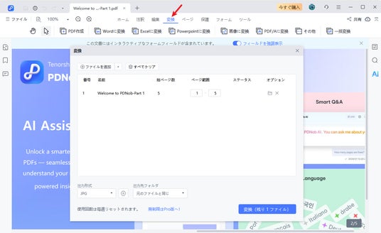PDFをWord、Excel、PowerPoint、画像(JPG/PNG)などに高精度で変換。