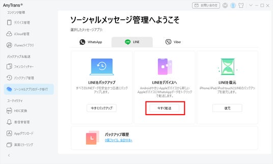 - LINE・WhatsAppデータの個別バックアップ・移行