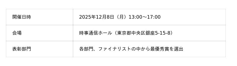 審査は、各界を代表する有識者や経営者、投資家などによって行われ、一般投票も加味して選考されます。また、表彰部門は売り上げ規模や従業員数を基に部門内でクラス分けされています。