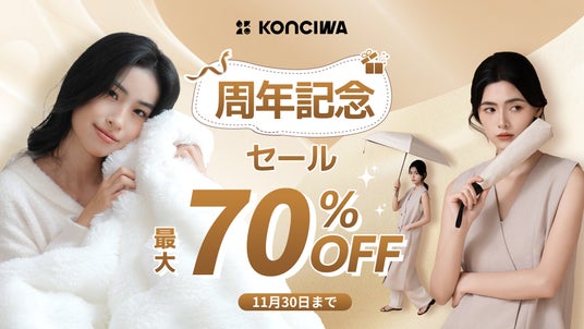 KONCIWA株式会社は年に一度の大感謝祭 KONCIWAの周年を記念して、日頃のご愛顧への感謝を込めた特別セールを開催中です。 最大70%OFFの驚きの価格でお届けいたします。