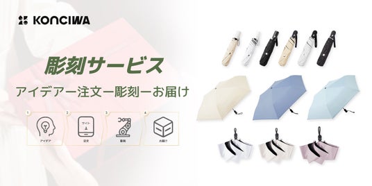 ギフトにもぴったりなKONCIWAの傘。 上品なデザインと確かな機能性で、贈り物としても大人気です。セール期間中は、名入れレーザー刻印サービス もご利用いただけます。 商品ページで「レーザー刻印サービス」を追加し、刻印したい文字を備考欄に記入するだけ。 世界にひとつだけの特別な一本をお作りします。